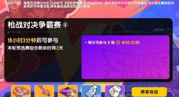 1、玩家每个周五到周日的晚上六点到十一点可体验枪战对决争霸赛。