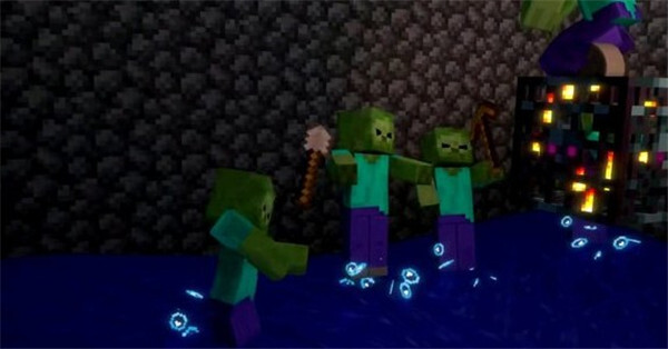 3. 操控三叉戟。溺尸能够对已掷出的三叉戟进行控制,使其攻击敌人,这一情形与herobrine控制扔出的黑曜石柱类似。
