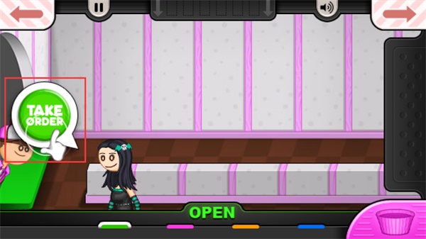 5、完成教程后,此时来了一位顾客,我们点击“TAKE ORDER”接受她的点餐请求。