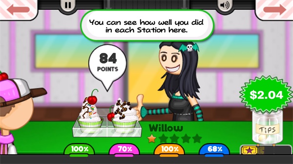 10、做好之后把冰淇淋递给客户,我们获得了84的评分和2.04美元。