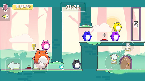 在这款游戏里,你需要掌握的一种方法是把猫堆叠起来,如此你们才能去挑战那些难度颇高的任务。游戏设有众多关卡,而且每个关卡的任务都大不相同,所有关卡都是依靠合作的方式闯关成功的。