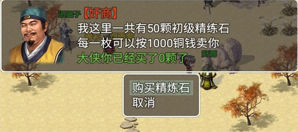 奸商 可以找他买一些前期过度白板装备技能等等 还有限量的精炼石。