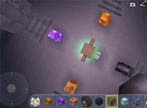 4、当我们对准物体并且一直按住屏幕时,我们就可以用手里的工具对其进行破坏,如果我们想放置某个物品,可以单击制作。