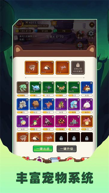在《挂机不能停》这款游戏中,为玩家准备了琳琅满目的武器装备,通过各式各样的武器组合,你能够开拓出更多别具一格的打法流派。不仅如此,游戏内还有丰富多样的宠物系统,能大幅提升你的战斗力。