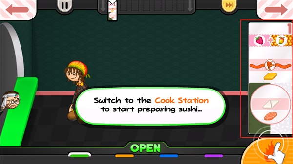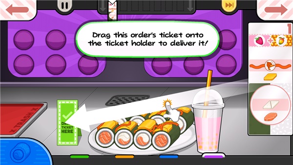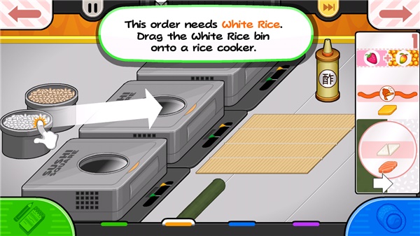 7、接下来玩家可以依据教程提示,开始制作寿司;