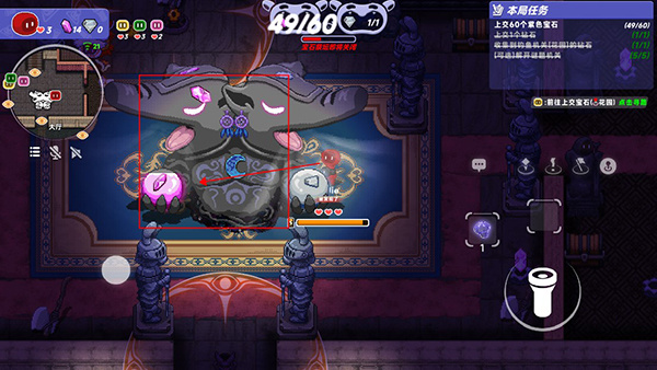 2、开始游戏后,玩家需要收集紫色水晶,全队需要达到六十个。