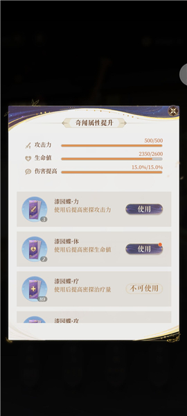 7.历练,历练体力不够用,可以选择性历练,材料缺什么历练什么,不用想着全部历练完