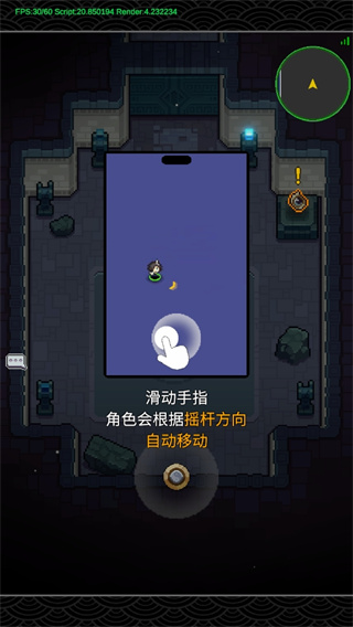 1、滑动手指,角色会根据摇杆方向,自动移动;