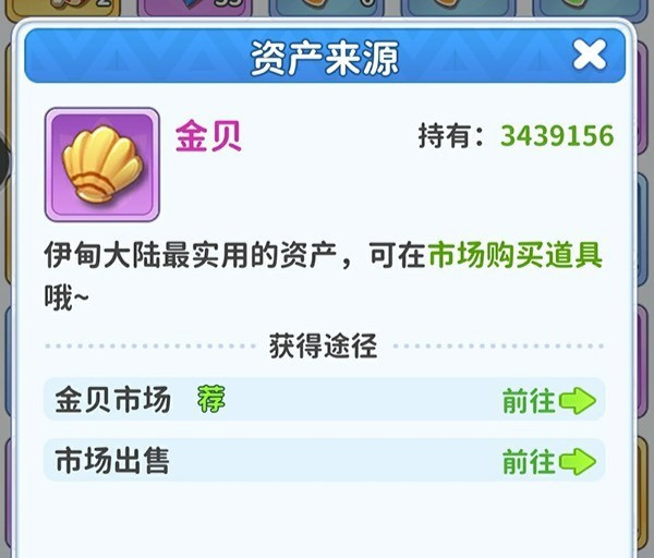 2、金贝,是最好用的资产,能够在市场采购道具,能够经由金贝市场、市场卖出得到金贝;钻石,获得的渠道不少,好比勇士之路、精灵印记、疾风快递、游猎、充值、每日签到。