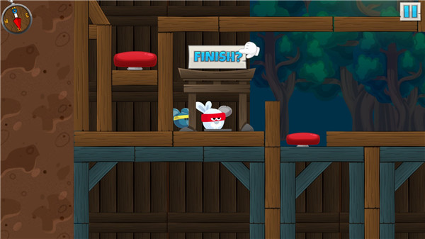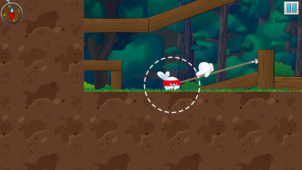 玩家得操控飞镖绳子,将兔子武士拽往关押着小动物的笼子,如此便能拯救小动物咯!