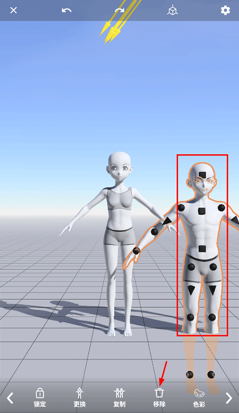 3、拖住建模身上的点,就能使其改变肢体动作。