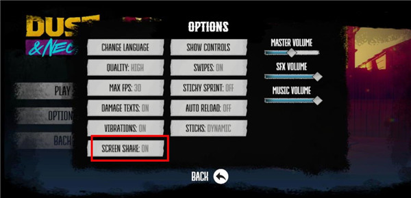 1. 下载、安装并打开游戏后,会发现游戏默认语言为英文。首先需要设置语言,操作如下:在主界面点击OPTIONS 。