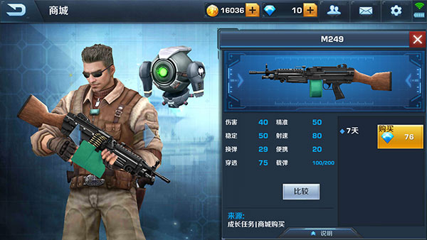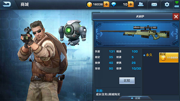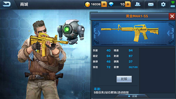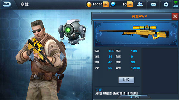 获得方式:首充6元获得永久(还有一枪可选择)、S级任务。