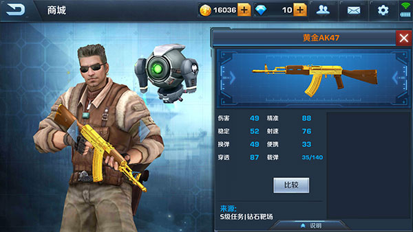 与其他AK47相比,黄金AK47的所有属性均有所提升,这种提升是全方位的。特别是每颗子弹的攻击力增加了5点,只要击中一枪头部,就能直接实现秒杀。