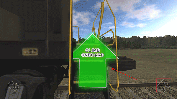 4、移动左侧箭头,即可调整游戏视角。点击右侧箭头,移动至楼梯位置,就能进入火车车厢。