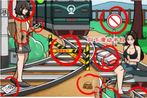然后点击地上的书包、路牌、右边女生的腿伤