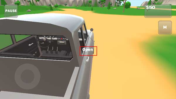 8、那要怎么开车门或者其他大门呢?方法是把白色的点对准门,此时会弹出“open”字样,点击这个字样就能打开门。