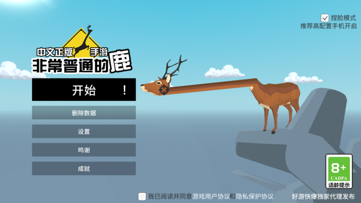 《非常普通的鹿未来篇》手机版,也就是deeeer simulator未来篇手机版。在这款游戏里,主角是一只“非常普通”的鹿,它将带领你闯入游戏世界。这只鹿可不一般,脖子能随意伸缩,鹿角还能当作利器,个性独特。玩家能像蜘蛛侠那样,伸长如橡胶般的鹿脖子穿梭于大街小巷,玩法毫无定式。游戏不仅支持中文界面,还新增了鹿灾等级的抓捕玩法,玩家可以不断挑战新任务。中文界面的设置,大大降低了游戏难度。