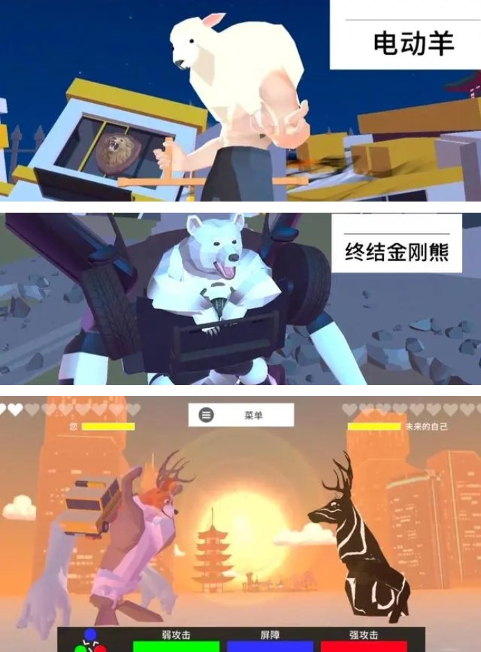 当玩家在空间结界打败了未来自己跟影子之后,就会切换出来,玩家操控鹿又到了一个全新的场景,这个时候敌方黑暗鹿跟未来的自己组合变成机器人,这个时候就要开启下一轮闯关了。