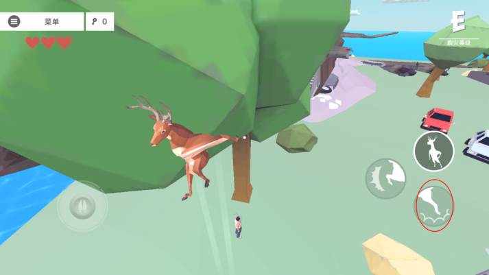 之后,地上会出现一些小型动物,我们只需变成肌肉鹿把它们撞飞就行。紧接着,一头北极熊出现,这头熊打不打都行,如果不小心被它碰到也无妨,再次复活就会增加一格血,失败次数越多,血量就越高。
