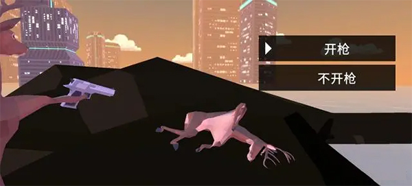 非常普通的鹿到这里就算是通关了,最后会让玩家选择开枪还是不开枪,如果说玩家选择开枪的话,就会进入到下一个动画界面。