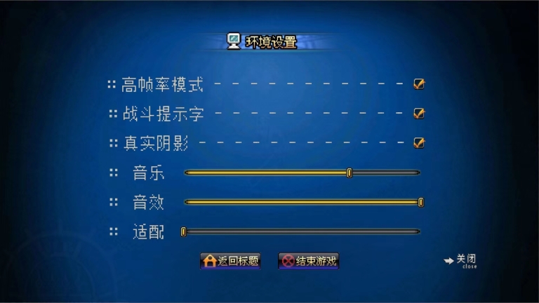 8、在环境设置界面,我们可以进行画面、音乐、音效等相关的设置,