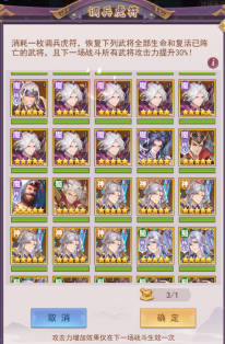 调兵虎符是重振旗鼓的终极手段,不仅能复活全体并补满生命,还能在下一场战斗中提高全体武将30%的攻击力。