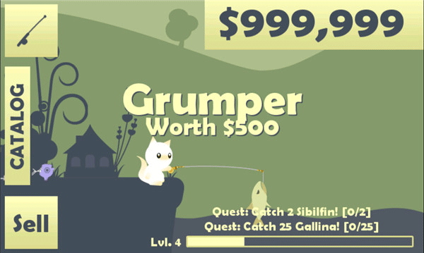 6、金币能够用于购置新的鱼竿,鱼竿价格越高,其功能就越强大,借助这样的鱼竿能够钓到距离更远、水域更深处的鱼。