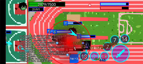 6、进入对战界面,我们可以通过滑动左边屏幕控制角色移动,右边有普通攻击和各种各样的技能可以使用,