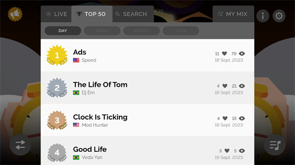 除此之外,节奏盒子time模组具备自动录制功能。当你听到极为动听的音乐时,就能运用该录制功能,将其上传至互联网,分享给其他玩家一同感受。同时,全球排行榜收录了排名前50的作品,玩家可以领略大神制作的歌曲。对此感兴趣的小伙伴们,不妨前来下载体验一番。