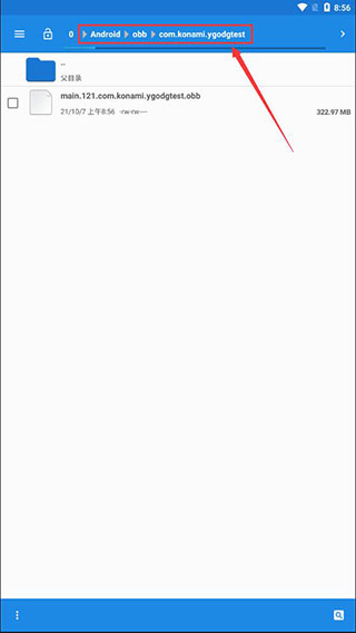 3、从网盘下载数据包,下载完成后,将其复制到Android/obb/com.konami.ygodgtest文件夹中。为防止意外情况,建议保留数据包。若不存在该目标文件夹,玩家需手动创建。