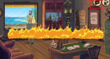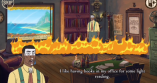 1. 点击对话框,直至对话结束。随后,你会目睹“Voodoo Detective”起火,别慌张,检查墙上的两幅面具,两幅都要检查。紧接着检查书柜的中间部位,书柜设有隐藏机关,拿起里面的喷水壶。然后点击“背包”图标,再点击“喷水壶”,主角便会拿起喷水壶,接着拿起喷水壶点击正在燃烧的文字,这时就能看到文字被浇灭的动画(今后使用道具均遵循此流程)。