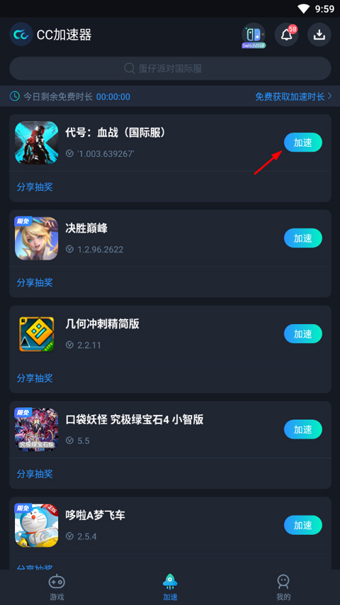 1、于本站下载代号血战免实名认证版本,该游戏启动需借助加速器。具体操作是打开CC加速器,在其中找到代号血战这款游戏,接着点击游戏右侧的加速按钮。
