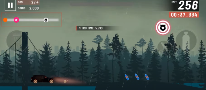 3、从游戏中能看到红色标志所处位置,它正朝着盾牌方向行驶,前方有加速瓶道具,此时可以勇往直前地往前冲。