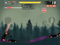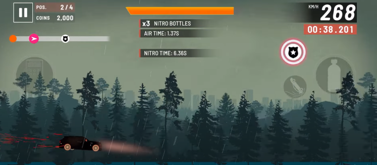 2. 游戏的操作十分简便,屏幕左侧用于控制前进与刹车,右侧则是加速道具所在之处,在屏幕右上角能够查看自己行驶的千米数。