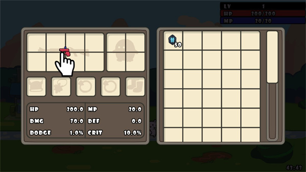 2、给猫咪选择并装备武器,这里以小手枪为例,