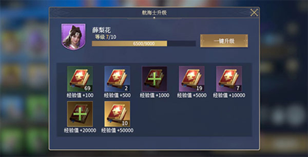航海士通过消耗经验书提升等级,每升一级都能获得战舰定制点数,升级与升星相辅相成,航海士等级是升星的前置条件,同时也需要航海士星级来突破等级上限。