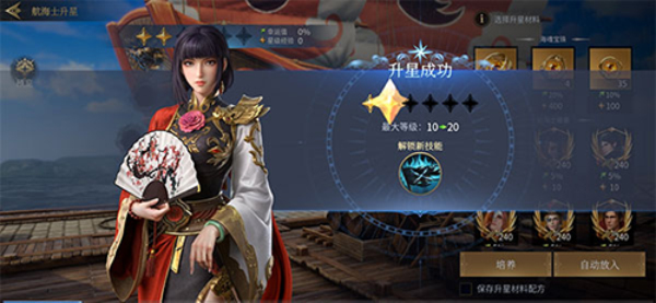 升星所需材料为海魂宝珠或航海士徽章,其中海魂宝珠除作为升星消耗品外,还会额外赋予幸运值,有一定概率让本次升星经验翻倍。海魂宝珠可从透海镜精英、召唤等途径获取。成功升星不仅能够突破航海士等级限制,还将解锁全新技能。