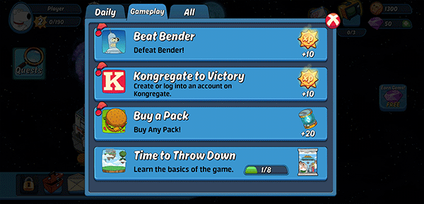 8、此外,除冒险关卡外,游戏内每日还会提供一些游戏任务,玩家完成这些任务后,能够领取到各类奖励。