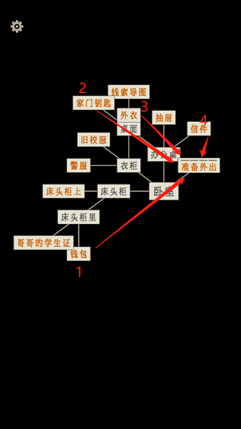 5、将【钱包】,【家门钥匙】,【外衣】和【信件】四个选项拖动到【准备外出】上