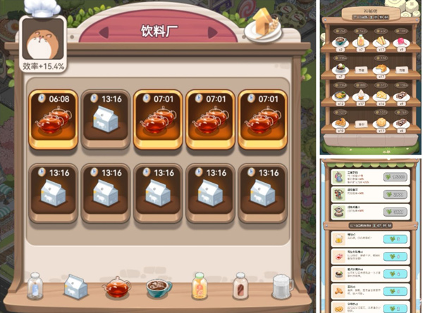 摒弃了种田玩法,削减了播种、收割等地面交互环节,转变为所有商品均在工厂的树上产出。树上会生长出各式各样美味的食物,诸如奶茶、爆米花、煎饼果子等等。商品生产不再采用前置商品组合的模式,使得完成订单变得更为直接与快捷。订单系统除了常规的金币订单列表、限时订单之外,增添了旅行订单。为配合这一设定,还设计了一种极为孤僻慵懒的动物,倘若它偶尔一改常态,不再犯懒且感到些许不好意思时,便会为你完成一份与众不同的特殊订单。
