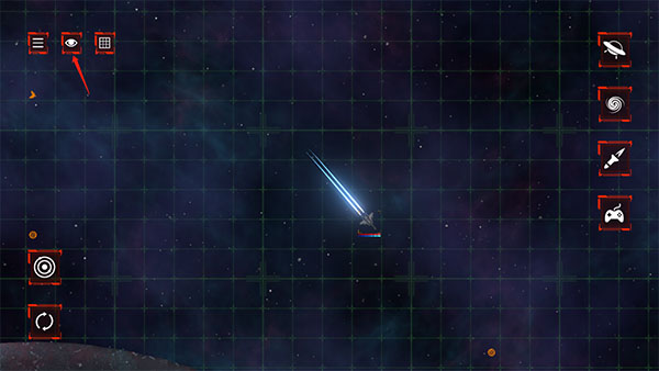 2、进入游戏后,点击上方箭头处,我们就可以驾驶飞船