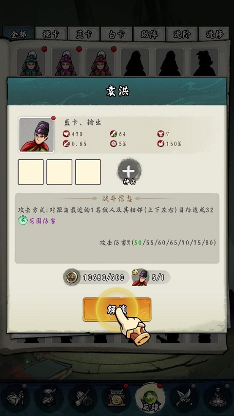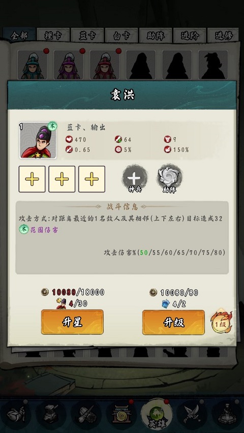 4、游戏的主线在于通过招募持续收集武将,武将能够借助助阵、进阶以及升级等途径来实现强化。
