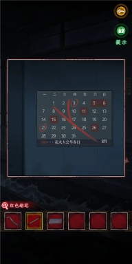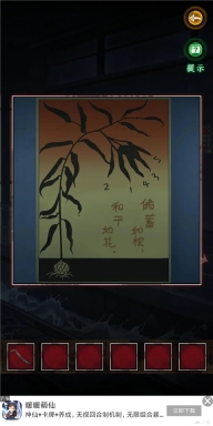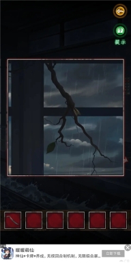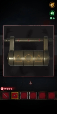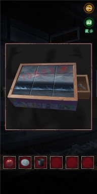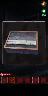 4、依据箱子上叶子给出的提示,通过观察叶子晃动幅度来判断,幅度可分为微弱、中等、大幅度,简称为1、2、3 。经观察后得出密码是12321 。由此获得红蜡笔、拼图碎片以及笔记本。