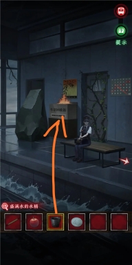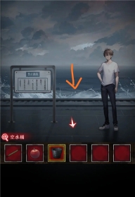 13、接着拿空桶前往站台装水,获取到一桶水后,按照笔记本上的记载,先对桶使用火柴,随后再使用苹果。