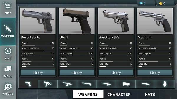 商城很容易理解,可以使用金币、钻石购买武器碎片、角色和皮肤,同时也能解锁新武器。