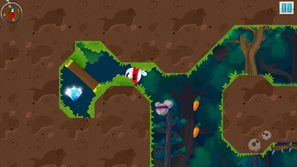 5、之后玩家要注意在左边隐藏着一个钻石,控制小兔子过去拾取。