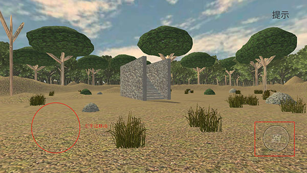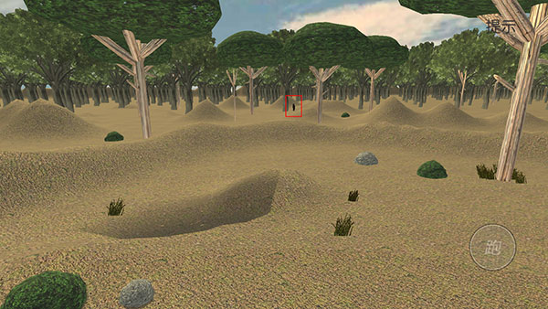 3、左侧设有虚拟按钮用于移动,右侧按钮的功能是跑,通过滑动屏幕能够实现视角的移动。