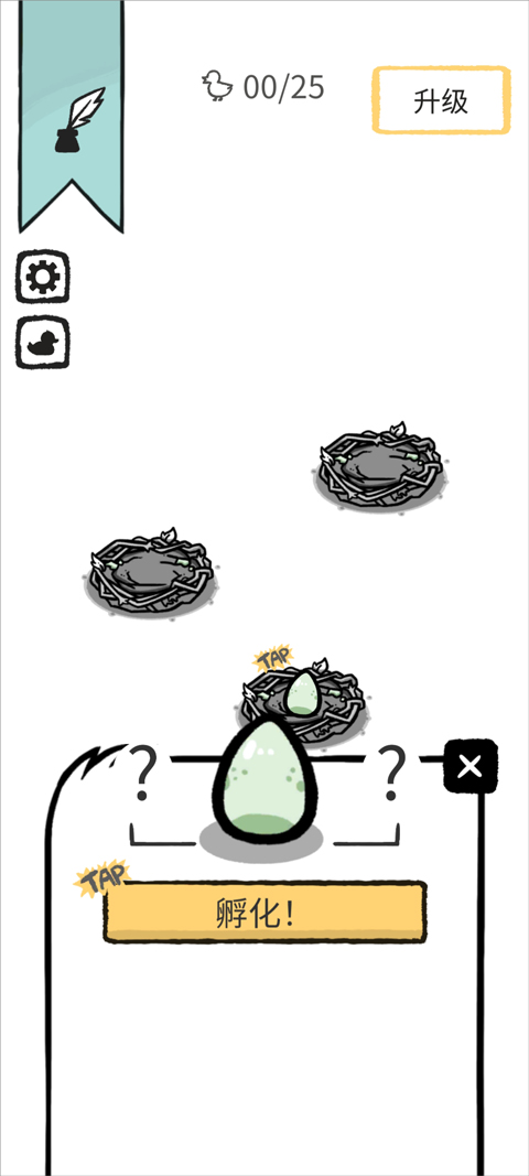 玩家仅需于场景之中稍作等待,鸭子便会在窝内孵出鸭蛋,点击鸭蛋,就能孵化出更多不同变异种类的奇特鸭子。