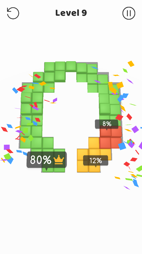 1、玩家同时面对的方块颜色也会越来越多,难度也慢慢增加。